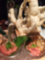 Sea Bass Sashimi, Beef Tataki with Truffle and Soft Shell Crab